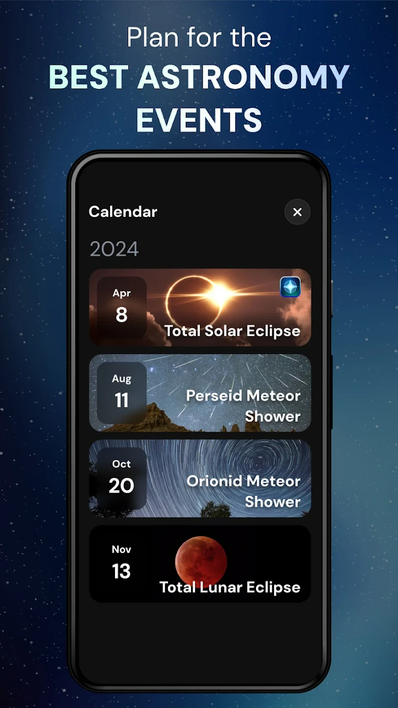 • Real-time Sky Camera Feature: Instantly see positioning of stars, planets, and satellites in your exact viewing area via your smartphone’s camera, making discovering celestial objects intuitive and dynamic.Easily identify which celestial bodies are visible right now without complex equipment or confusing sky maps.