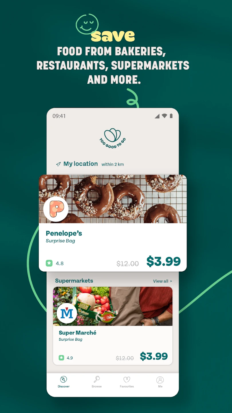 - Surprise Bag Discovery: This feature allows users to easily find available discounted food surplus from nearby stores or restaurants, offering a range of items like bakery goods, prepared meals, coffee, and more. This saves money and reduces waste by making previously uneaten food accessible and affordable, preventing perfectly good items from being discarded.