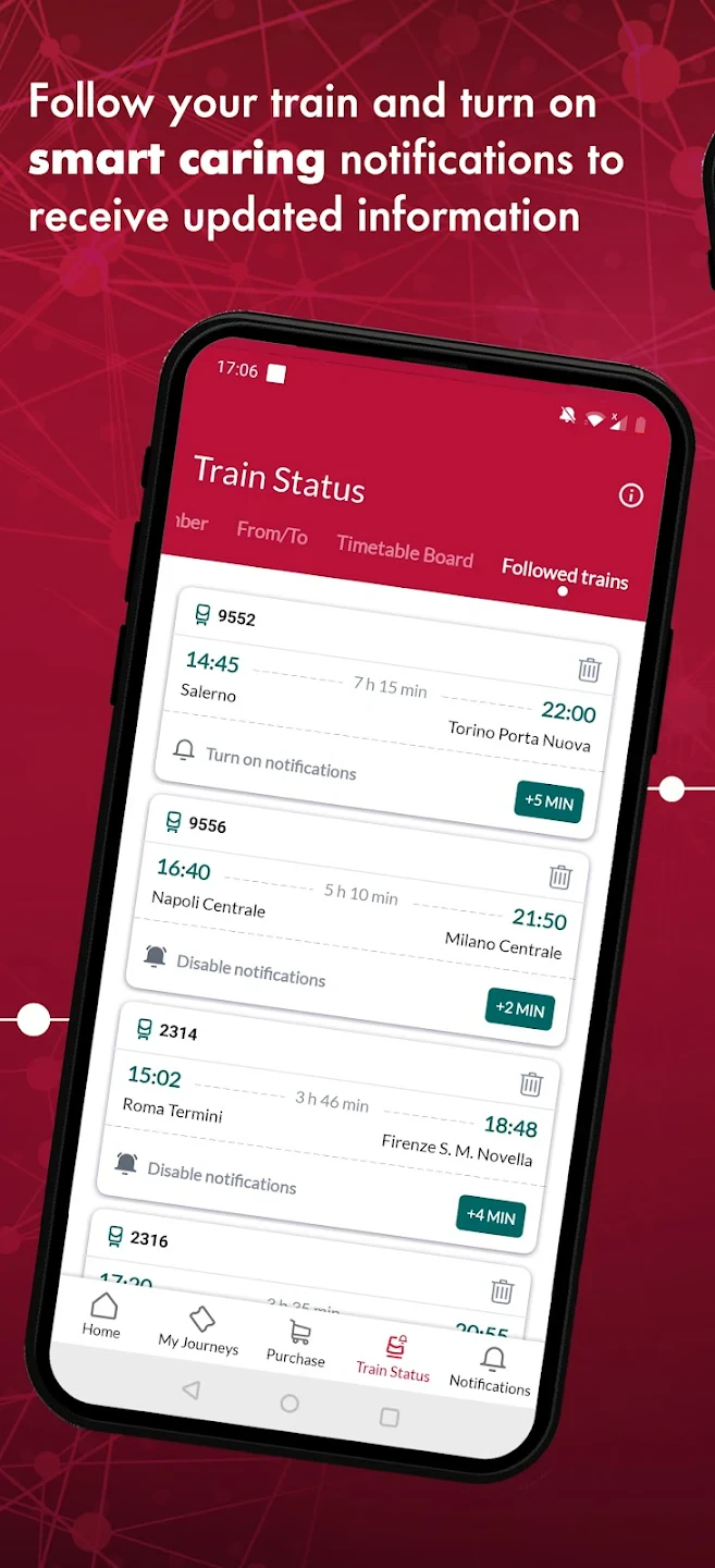 • Travel Planning & Route Optimization: Easily plan multi-stop journeys or complex itineraries using Trenitalia’s integrated journey planner. This feature automatically suggests connections and alternative routes based on your preferred travel time, date, and budget constraints, significantly reducing planning time and stress.