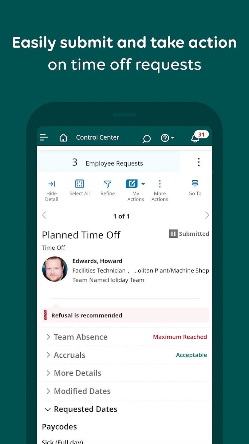 • Seamless Mobile Access: Available via a mobile web application and dedicated app, UKG Dimensions lets managers approve time-off requests, view schedules, and manage basic tasks on the go. This mobility supports faster decision-making, enhances workforce agility, and integrates workforce management into the busy flow of daily operations.