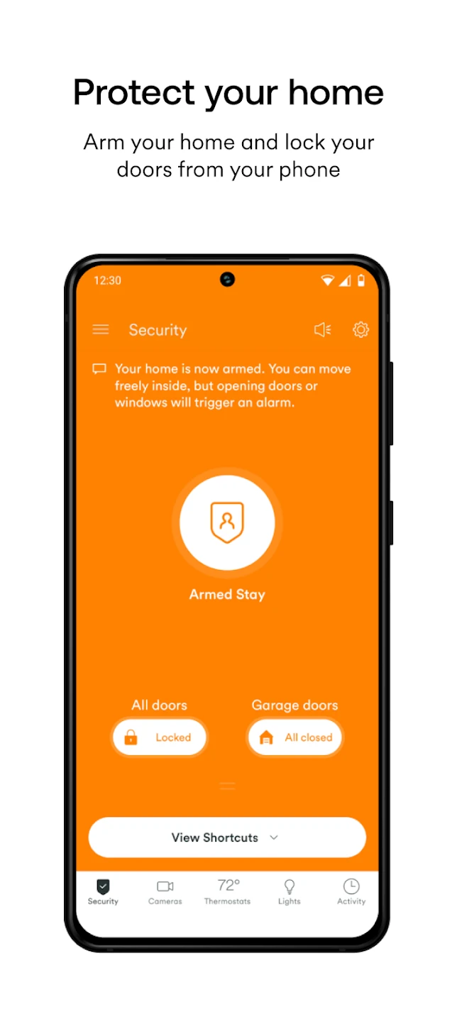 Designed for simplicity and user experience. Includes system status monitoring and flexible security arming options coupled with customizable alerts. |