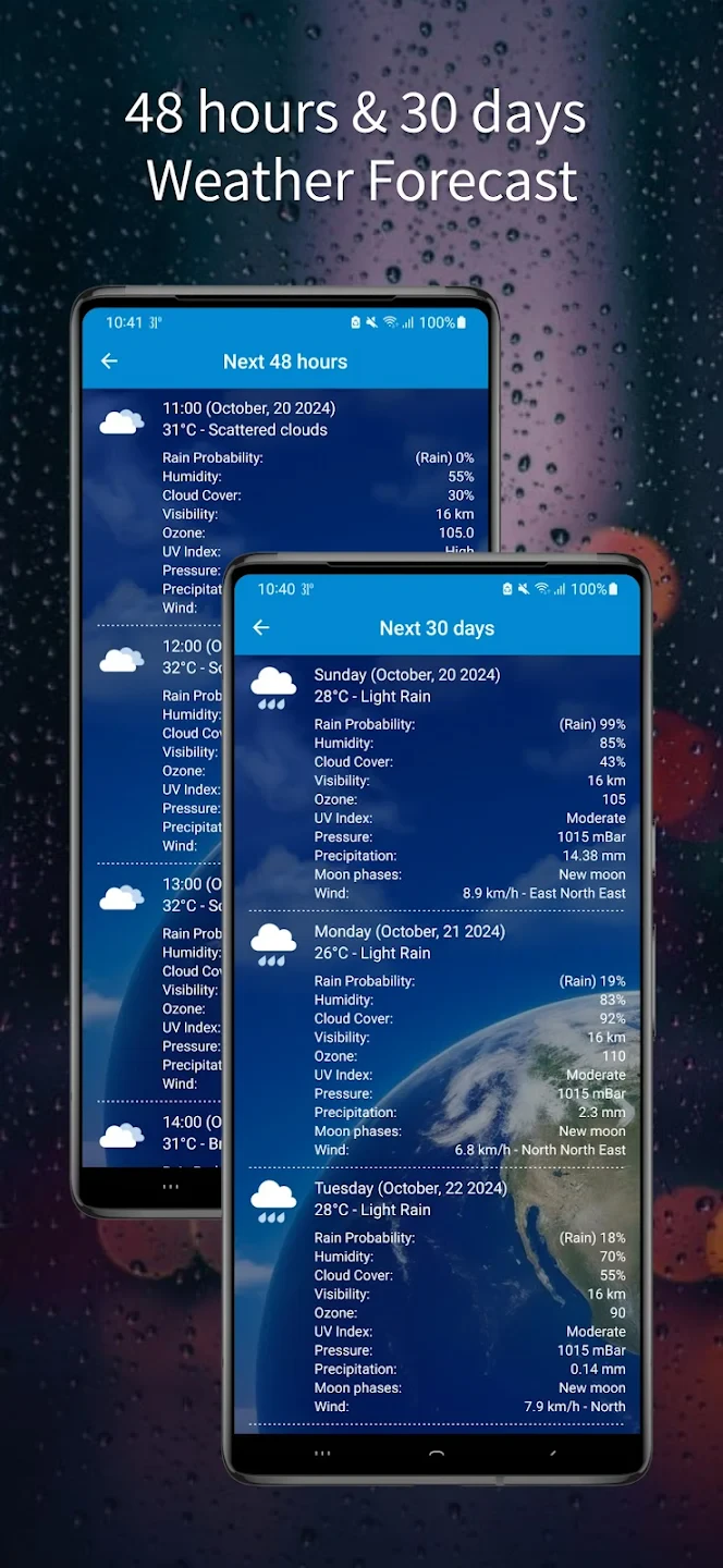 - Multi-Day Forecast: While focused on radar maps, the app also provides 7-day predictions showing storm paths, temperature shifts, and precipitation probabilities. This flexibility makes it useful for both immediate planning needs and longer-term travel preparations.