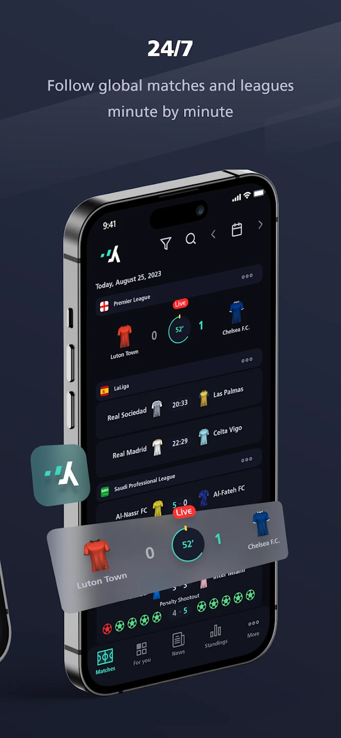• Live Match Updates: Receive second-by-second score changes with accurate timing details, allowing users to stay informed about ongoing games even without actively checking. This feature benefits busy fans who want notifications only when significant events occur, such as goals or touchdowns, rather than passive score checking.
