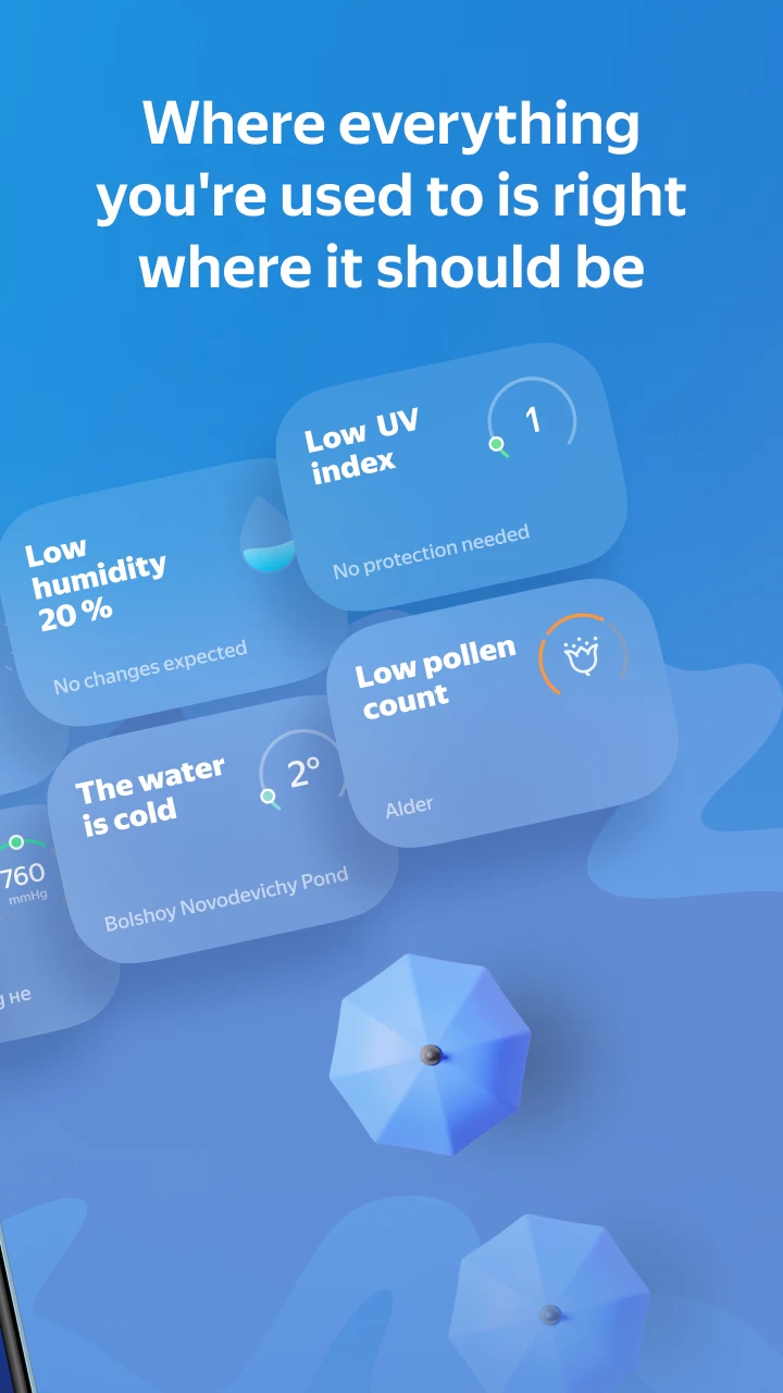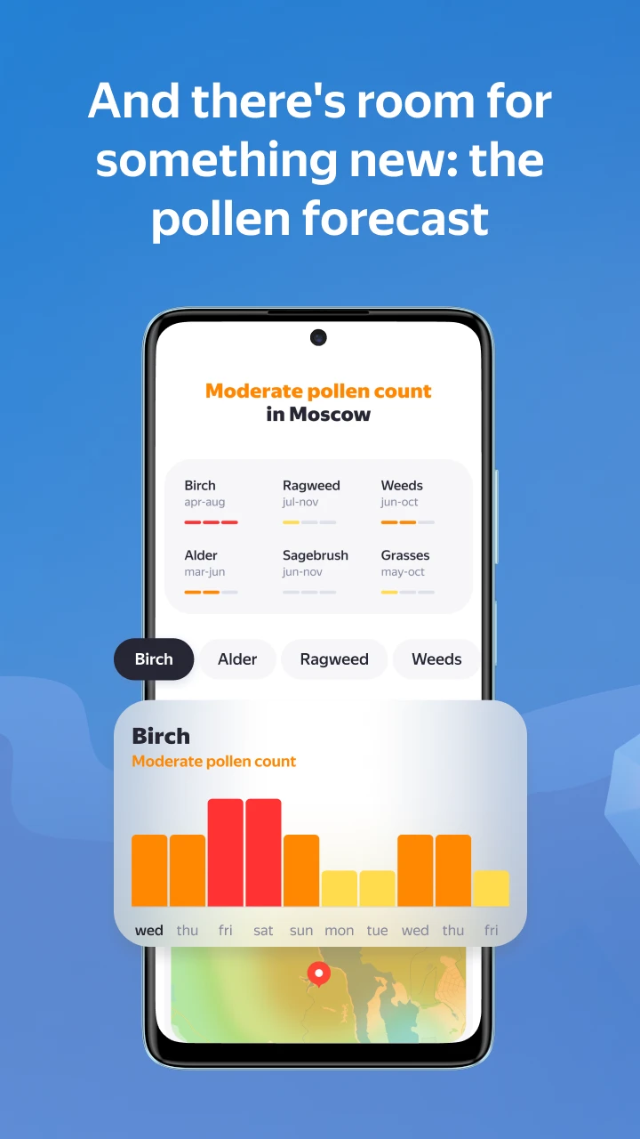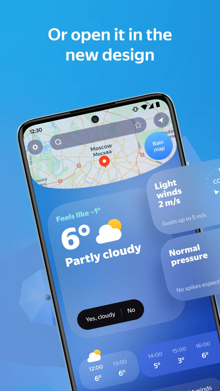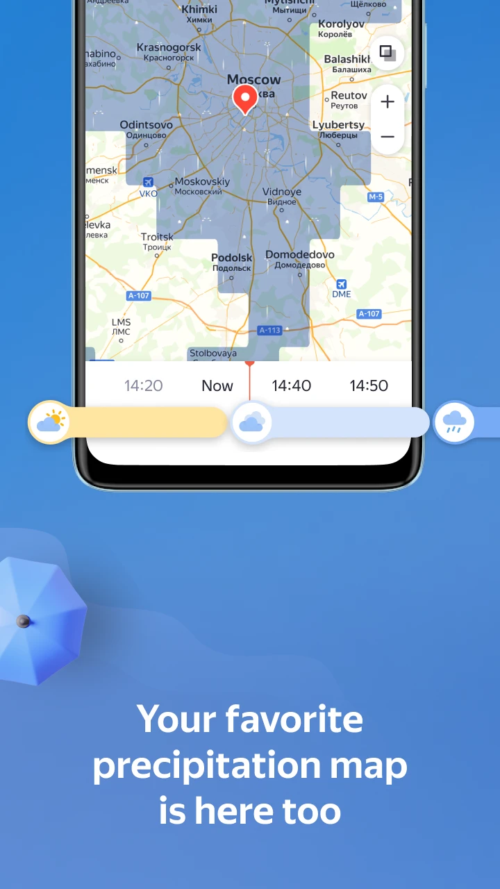 - Rain Radar Map: Yandex Weather & Rain Radar includes a dynamic, animated radar map showing precipitation intensity and movement across a wide area. This technical visualization tool enhances usability by providing an intuitive way to see current and future rainfall patterns instantly, improving preparedness for wet weather situations.